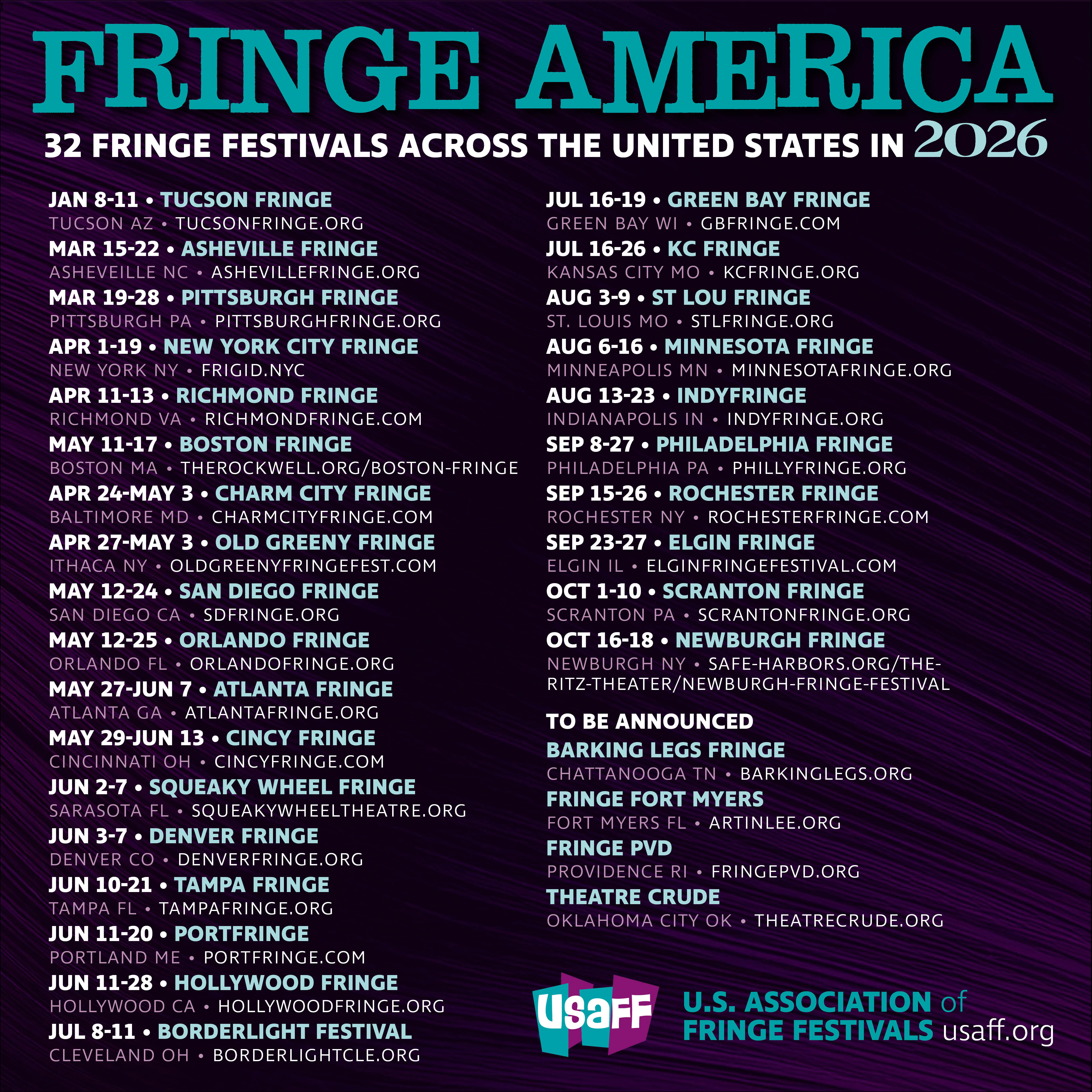 Check out the other US Fringe Festival 2026 dates