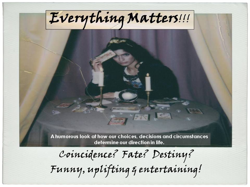 Fate, luck and kismet. A humorous look at how our choices, decisions and circumstances determine our direction in life. The people, the places...how much of this is destiny or is it all just a big coincidence?