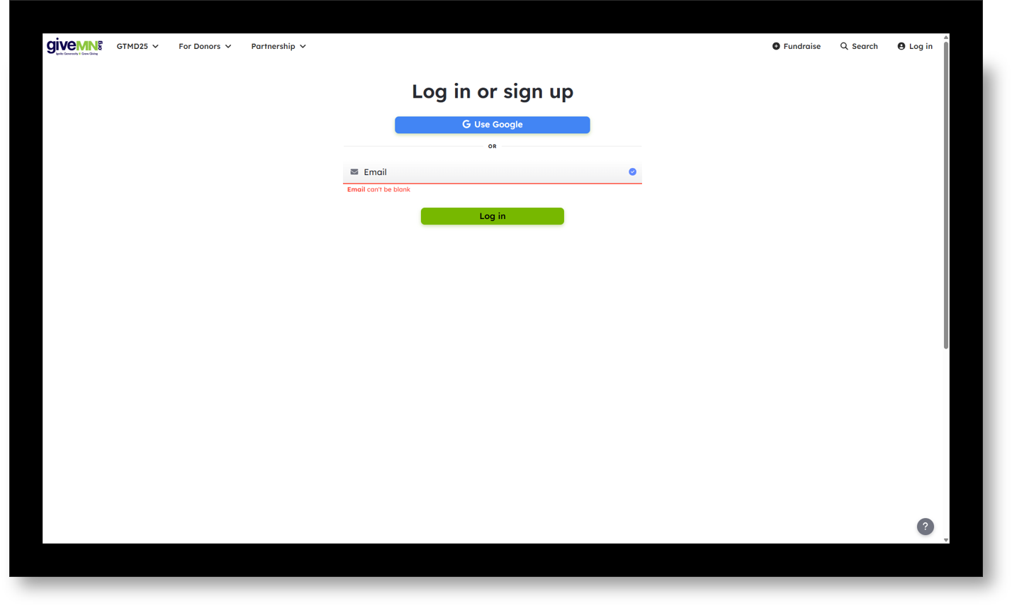 Step 1: Go to GiveMN.org, Login to an existing account or sign up for a new account.